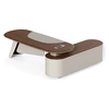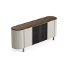 Сочетание полос с серебряной отделкой и текстурой дерева создает изысканную визуальную привлекательность, а изогнутый дизайн придает изделию уникальную мягкость.