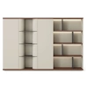Комбинация полукруглой столешницы под дерево и стеклянной двери в алюминиевой раме придает изделию плавный и простой, но утонченный вид.