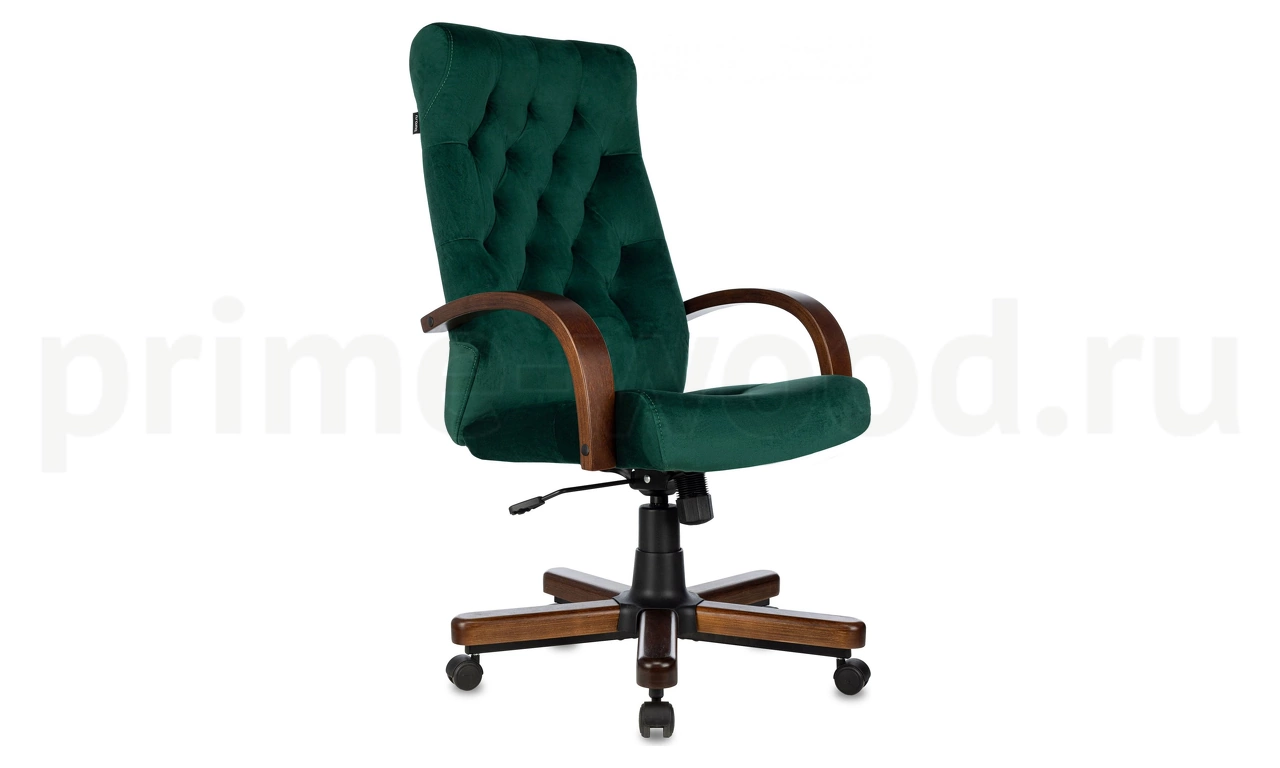 Кресло руководителя Бюрократ T-9928WALNUT/FABR/GN- зеленый цвет, крестовина металл/дерево.