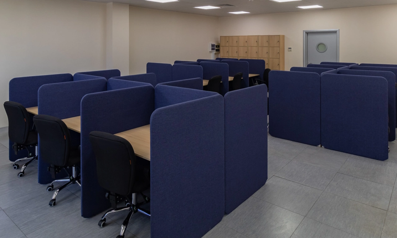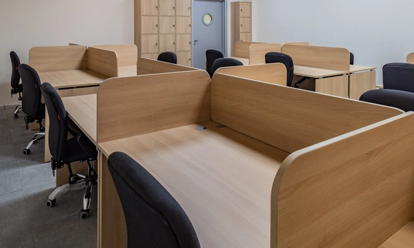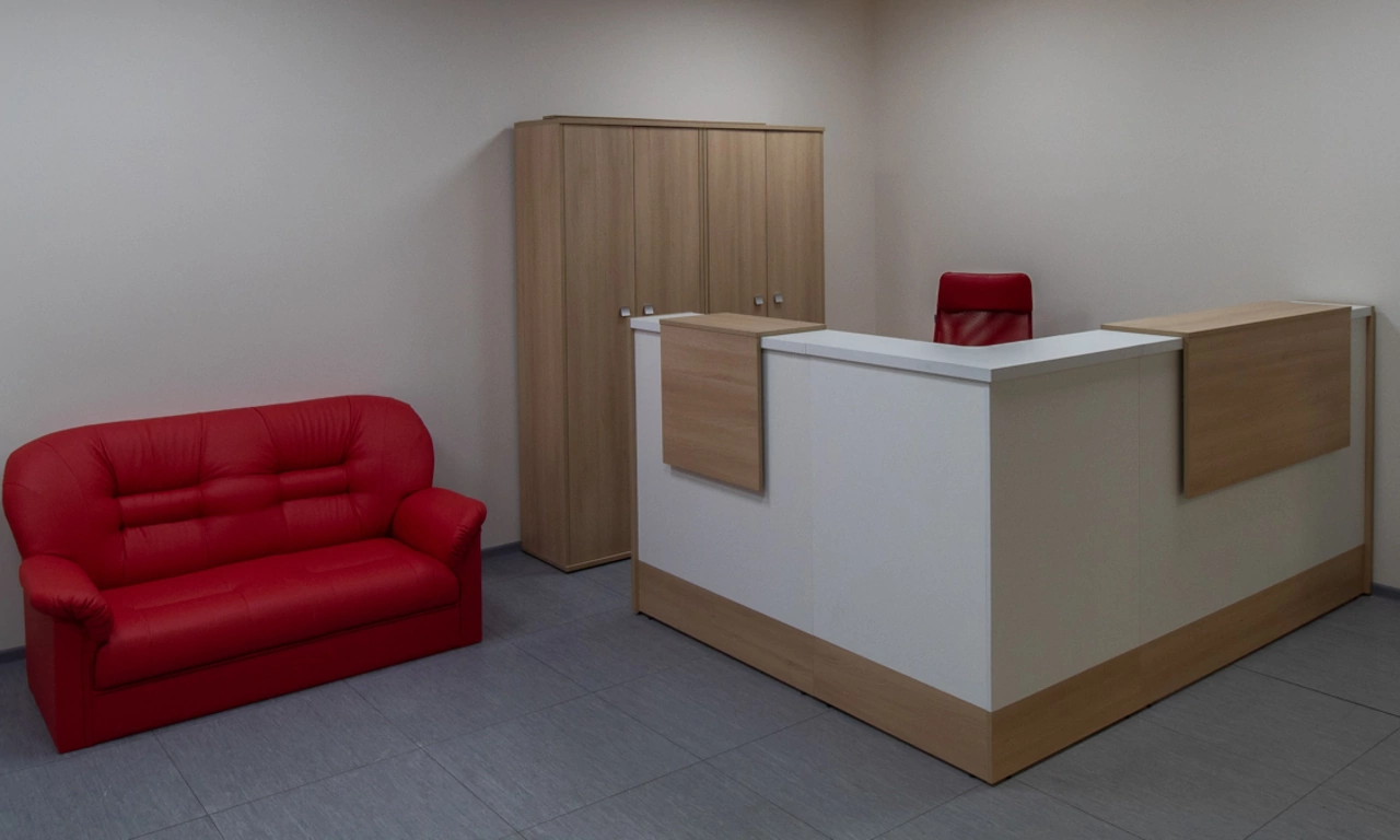 На ресепшене сотрудников встречает стойка из коллекции STYLE и уютный диван ПРЕМЬЕР/М в фирменном красном цвете компании. Перед нами стояла задача оформить весь офис в едином стиле, поэтому во всем пространстве мы использовали мебель одного производителя всего двух коллекций: STYLE и Колл-центр. Это позволило сохранить единый оттенок дерева во всех помещениях, а еще минимизировало риски с задержкой производства и поставки. Так же и с креслами - все сотрудники сидят на комфортных и очень надёжных креслах 9801. Все присущие традиционному колл-центру с высокой "плотностью сотрудников" нюансы так же учтены. Оборудовано отдельное помещение под гардероб, а у каждого сотрудника есть локкер для личных вещей. Доставка мебели в Калининград и сборка осуществлялась силами нашей компании, что позволило руководтсву ICL контролировать нашу работу на любом этапе и быть уверенными, что колл-центр будет готов в срок.